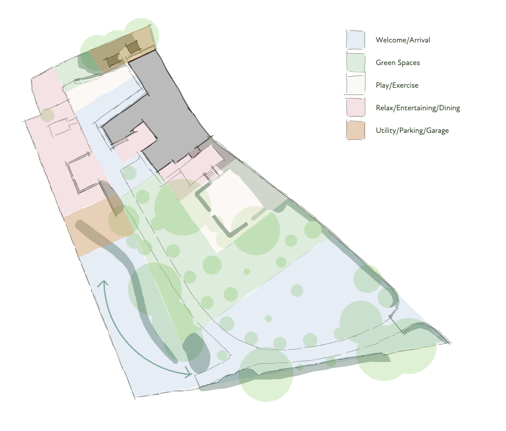 Zoning plan for one of our projects developed during site analysis, illustrating how each area of the garden can be thoughtfully defined and utilised.